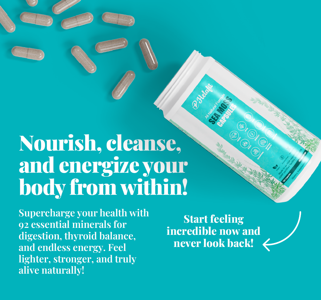 Iodine from Sea Moss and Bladderwrack supports thyroid function, helping regulate metabolism and sustain energy throughout the day.